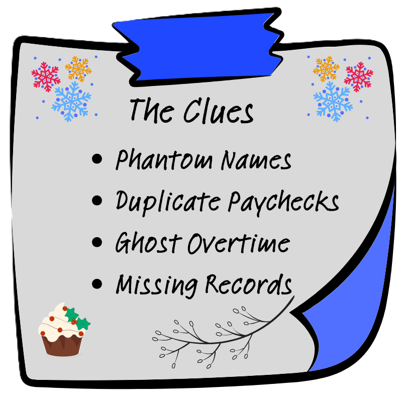 Detective Debit’s fix: reconcile payroll against HR records monthly, require dual approval for new hires, and audit bank account details.