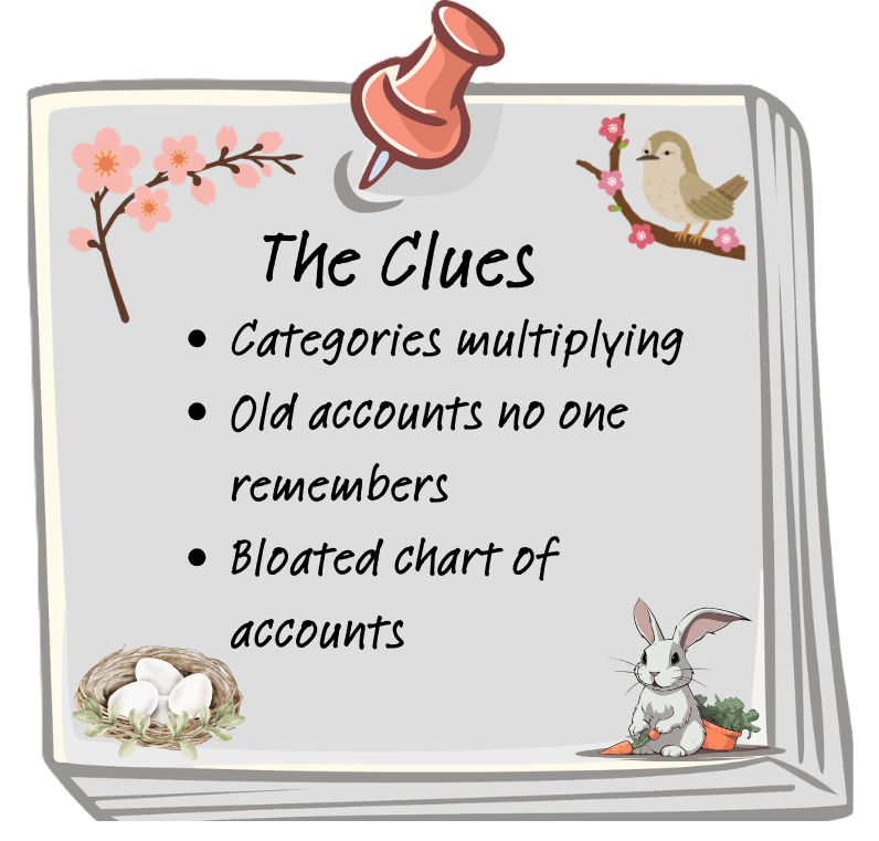 A business owner’s chart of accounts had grown wild and unruly — categories multiplying like rabbits, sub‑accounts nesting inside each other, and old labels hanging on like sweaters no one’s worn since 2014.