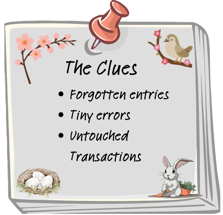 It’s the bookkeeping equivalent of finding stray Easter eggs in the grass — forgotten, slightly questionable, and quietly making a mess where no one can see it.